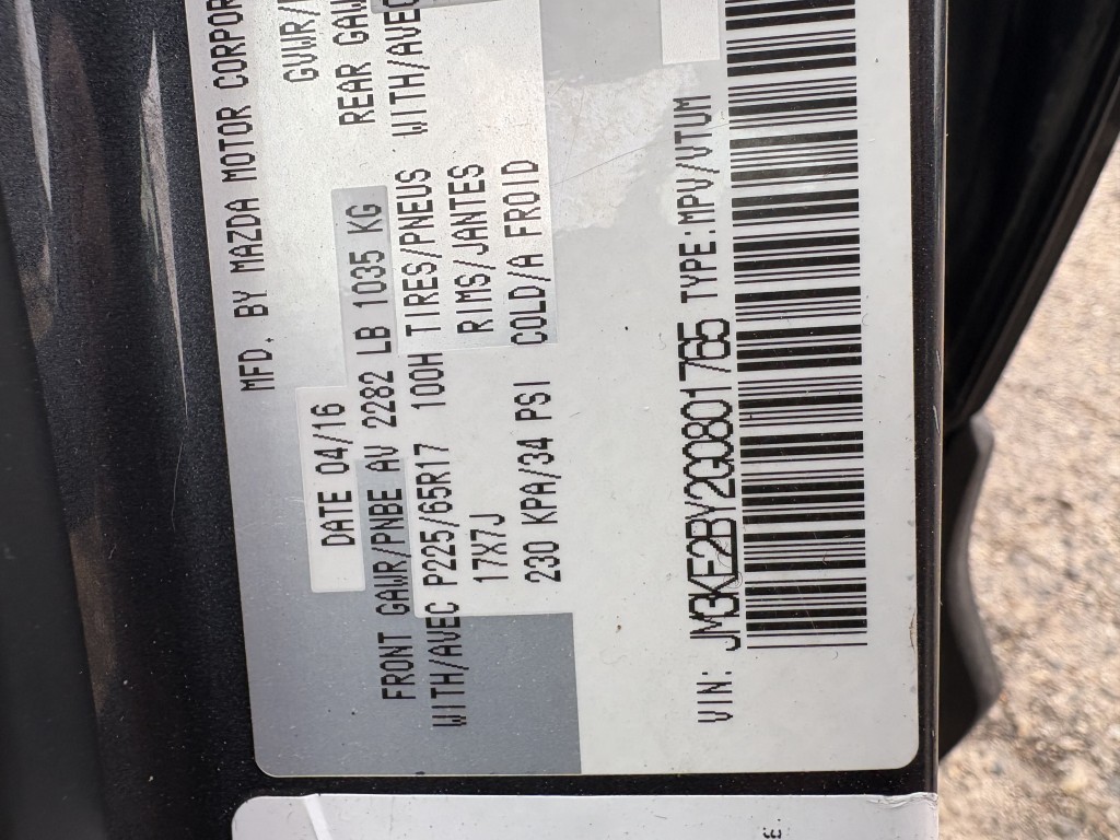 | VIN #: | JM3KE2BY2G0801765 |