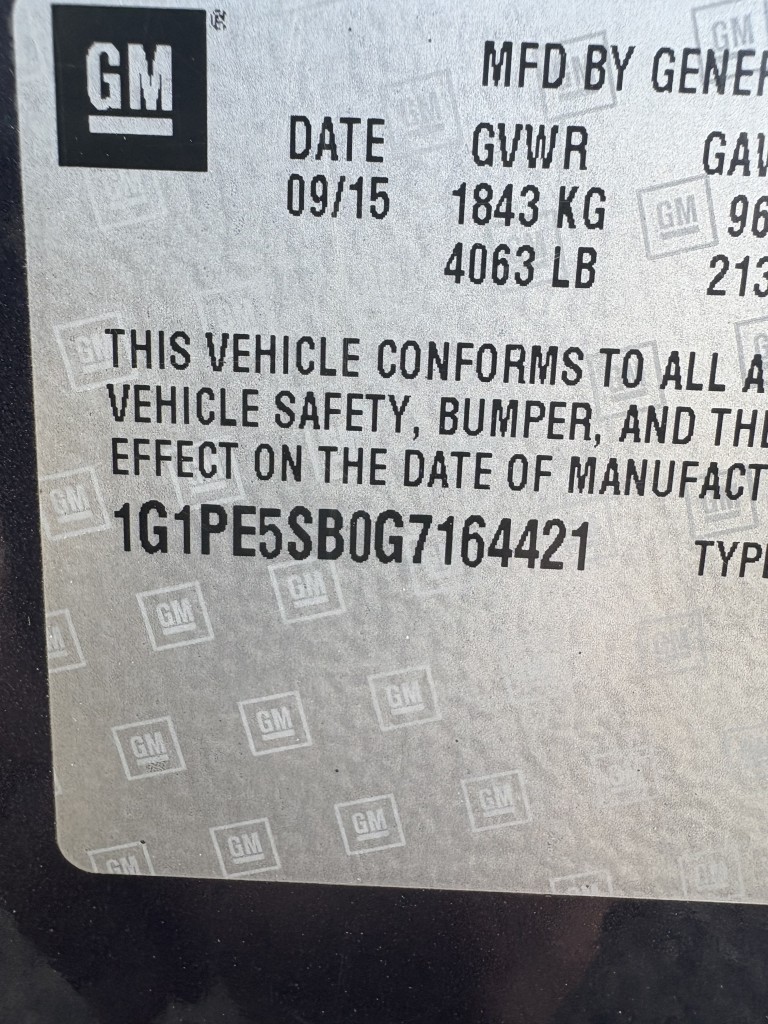| VIN #: | 1G1PE5SB0G7164421 |